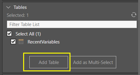 The XML file will be converted into a single table; select the table and click the 'Add Table' button.