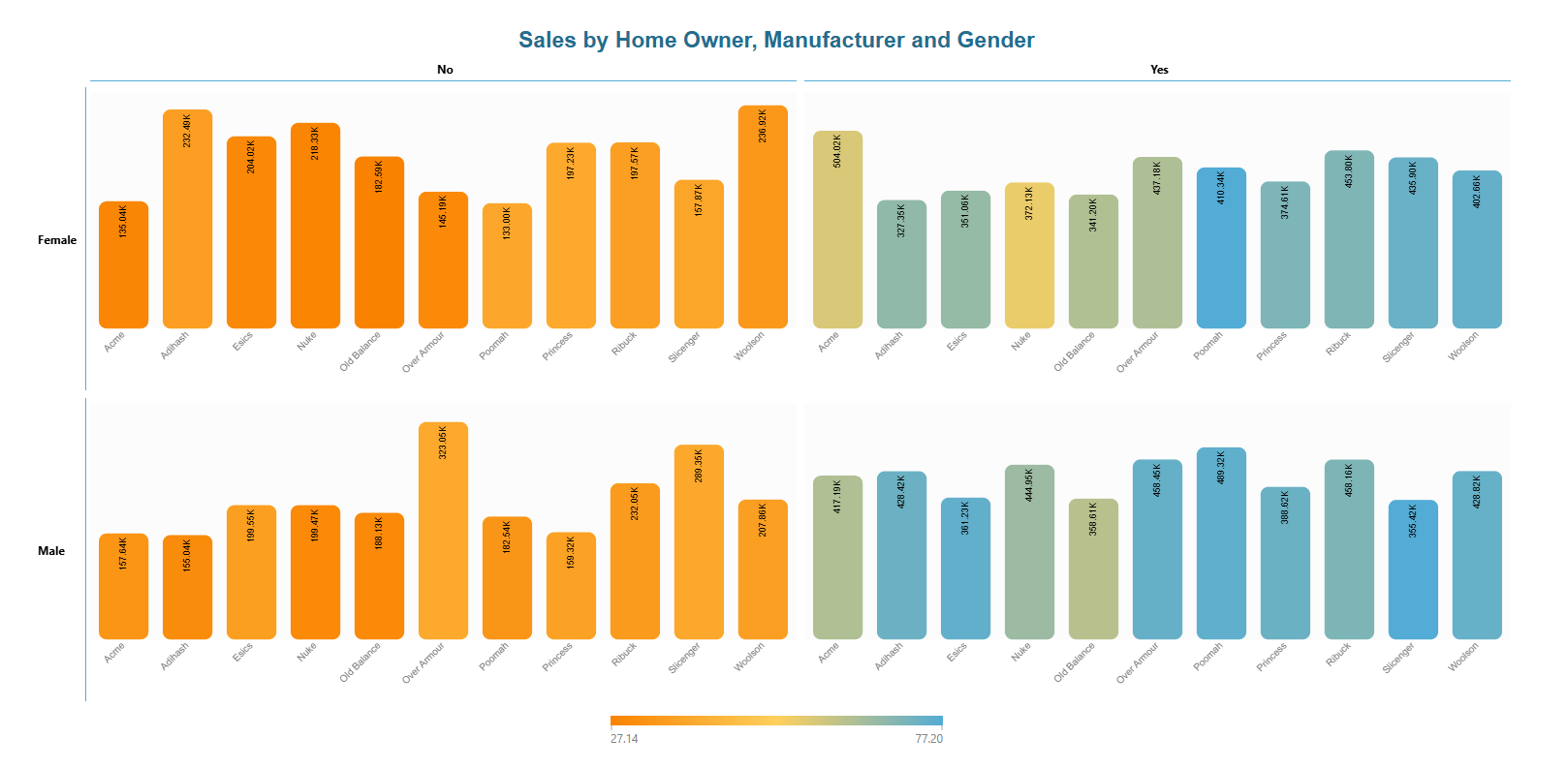 - The initial image shows "Sales by Home Owner, Manufacturer, and Gender" and the columns match each of these items.