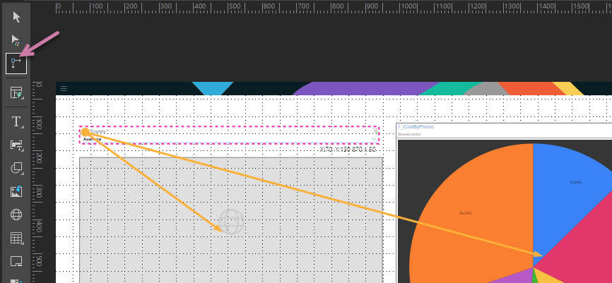 • Alternatively, select the Interaction Picker in the Toolbox (purple arrow), click the slicer or visual that you want to affect the web panel and drag your cursor to the web panel to create the interaction: