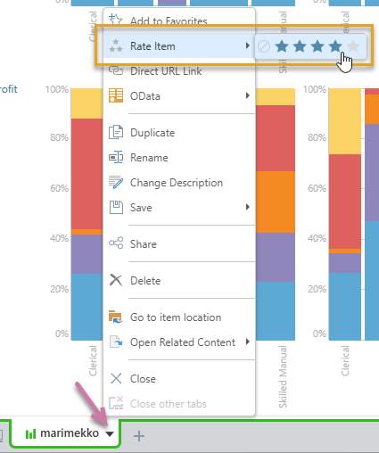 Any item, excluding folders, from any content view can be rated from the context menu (as shown below):