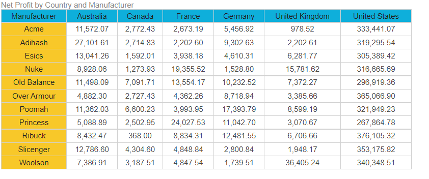 Here, the alignment was set to left for the first two rows, middle for the 3rd row, and right for the remaining rows. This is achieved using contextual grid formatting.