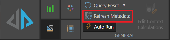 The Refresh Metadata button can be accessed from both the Report and Query ribbons.