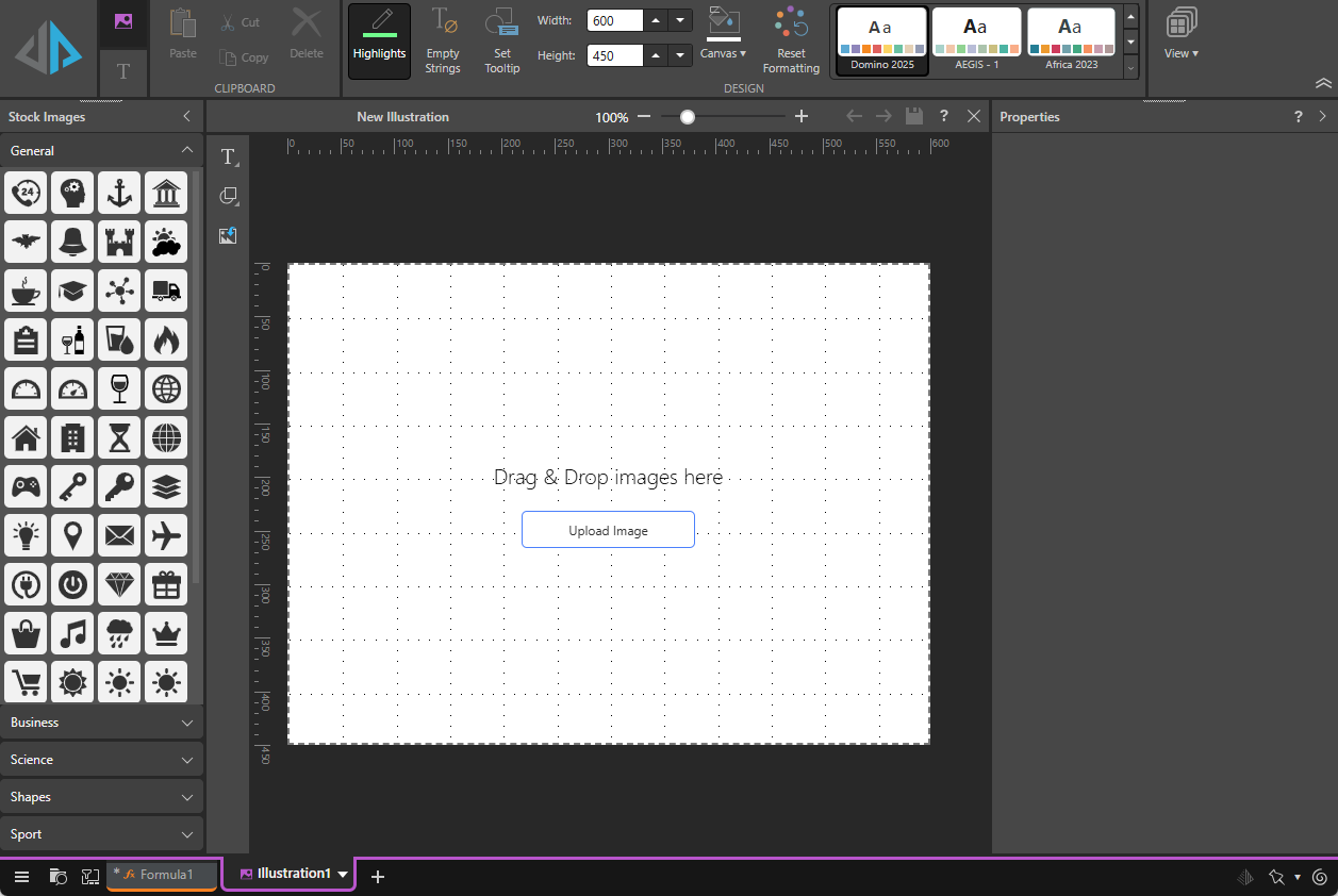 Whichever method you use to start Illustrate, the Illustrate workspace is displayed and there is a new illustration with the name IllustrationX (where X is a number) in the view: