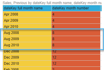 - You cannot use Month Number to provide the Sort order for your Full Month Name column, since multiple "full months" match each month number (Aug of each year matches month number 8), leaving Pyramid unable to distinguish between August in 2008, 2009, or 2010 in your data: