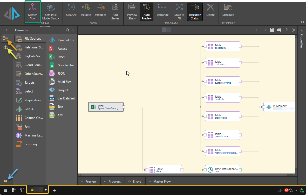Only users belonging to a Profile that has permissions to the Master Flow (green highlight above) will have access to it. The Master Flow is an advanced toolset used to perform complex data cleansing and manipulation.