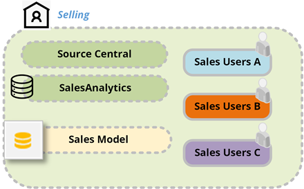 To ensure each subsidiaries users access the correct data, we'll establish a direct link between tenants and their corresponding data sources. 'Alpha Selling' users will connect to 'Alpha Source', 'Beta Selling' to 'Beta Source', and 'Gamma Selling' to 'Gamma Source'.