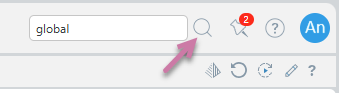 The Quick Search option in the Home menu is a fast way to seed and execute a content search directly from the home page. Click the magnifier to open the search field (purple arrow) and then type a search string into the box to trigger the search framework and run a simple "contains" search query on the repository for the current user.