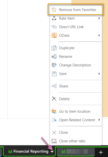 In the Pro apps, you can flag or unflag a content item or folder as a favorite from the content manager or from the tab menu in the App Tab interface. The option is a "toggle" button, where the current state determines which value the button or context menu item should take: