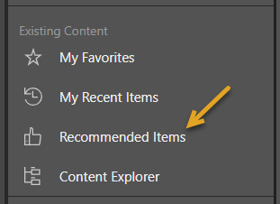 User Recommended items can also be accessed from the Quick Start panel where the Welcome widget preset has been added to the Hub: