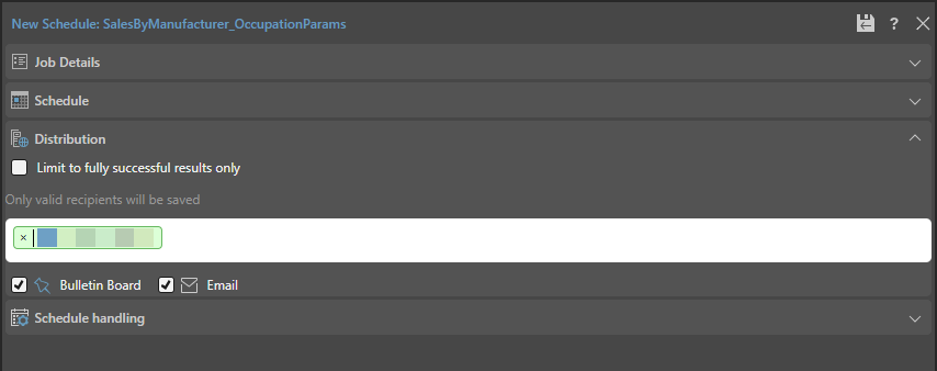 - Email Distribution is Off: Choose this option to disable email distribution for the current schedule.
