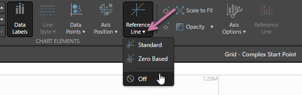 Important: The look of the reference line is affected by the Axis Position in the chart.