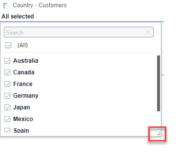 When you click a slicer, a panel of options "drops down" for you to select. Sometimes, it is difficult to see all the available values in the slicer panel. Click and drag the bottom right-hand corner of this panel to resize it: