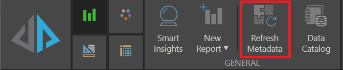 The Refresh Metadata button can be accessed from both the Report and Query ribbons.