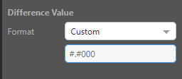 Specify a custom format for the Difference Value. When Custom is selected, a text field opens that you can type a custom format code into. Custom format codes are the standard patterns that control how a number is displayed using placeholders and separators:
