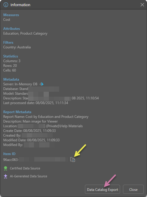 - Item ID: The unique item ID for this visual in Pyramid.