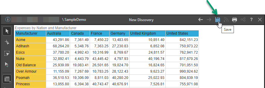 Once you've built your discovery, you can save it to the required content folder location and share it with other Pyramid users. Depending on the roles assigned to those users, they may be able to view your discovery, interact with it, modify it, or use it to build presentations, publications, infographics, and advanced calculations.