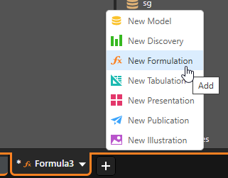 You can open Formulate from within another module by clicking the arrow on the module tab and selecting New Formulation: