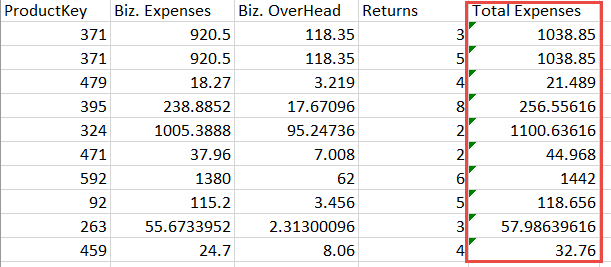 To do this, we will Sum the Operating Expenses and Overhead Expenses columns to produce a new column called Total Expenses: