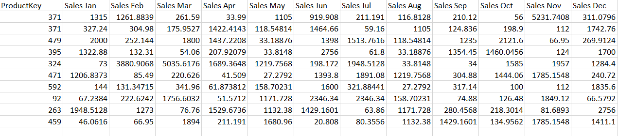 In this example, our table contains a Sales column for each month of the year.