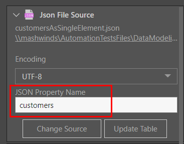 - Update Table: update the resulting table with any changes made to the JSON properties. This option appears only after the table has been added to the data flow.