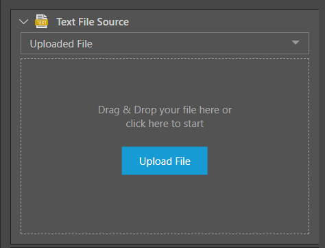 Upload or connect to a Text file and convert the data into a table. The Text file source supports local file upload, or pointer to a shared file on a network drive, or URL address of a text file. Both Fixed Width Column files and Delimited files are supported.