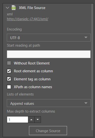 - Encoding: encoding is set to UTF-8 by default. If your XML file source has a different encoding, select it from the drop-down.