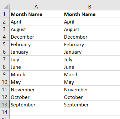However, since we sort by Month Number, we get a list of month names in their correct (chronological) order: