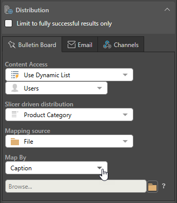 - Bulletin Board: Use slice values and an imported list of roles or users. For more information, see Dynamic Distribution to Bulletin Board in Publish Pro.
