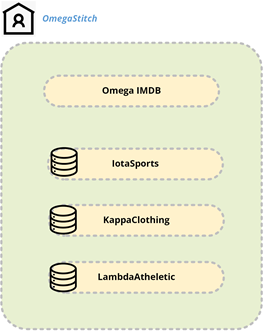 The manufacturer employs a standard database schema for each of its clients within an IMDB data source hosted within the “OmegaStitch” central tenant.
