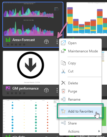 Any item, including folders, from any content view can be flagged or later unflagged as a favorite from the context menu (as shown below):