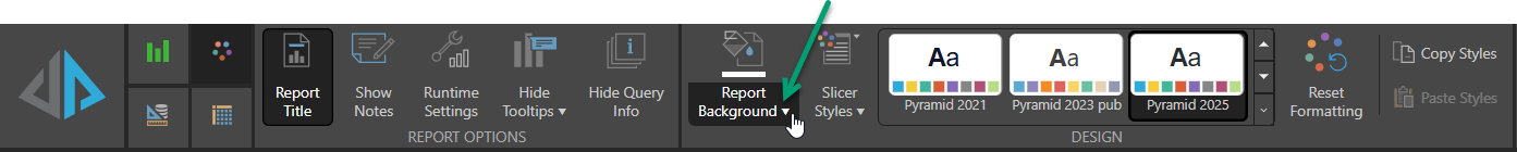 For example, the Color Picker can be opened from the Report Background dropdown list on the Design ribbon:
