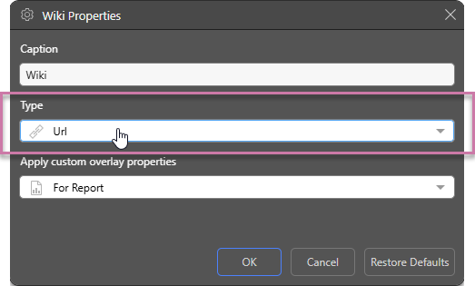 To enable the jump function for a URL hierarchy, assign it a URL Type either by setting a URL category in Model or by right-clicking the hierarchy in Discover (in the Dimensions panel or drop zone) and selecting Properties: