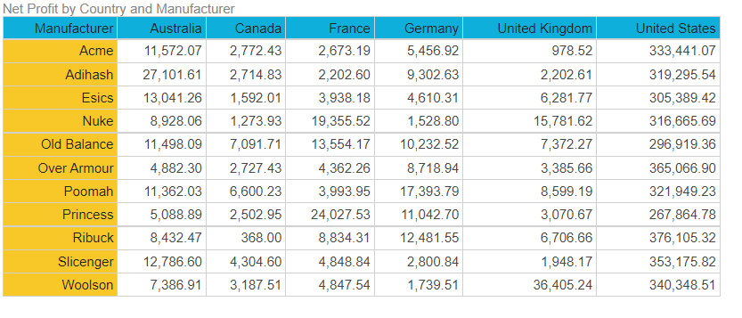 Here, the alignment was set to left for the first two rows, middle for the 3rd row, and right for the remaining rows. This is achieved using contextual grid formatting.