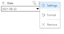 Configure the slicer preferences from the Slicer Settings panel. Start by clicking the slicer's context menu (ellipsis) and select Settings from the context menu: