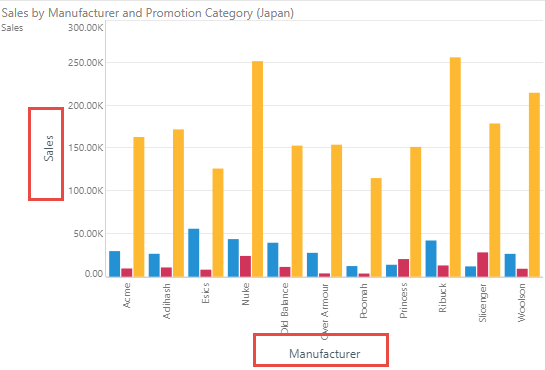 - Direction: (Only supported for the x-axis) Display the x-axis labels horizontally, vertically, or at a 45 degree angle. Choose Auto to let Pyramid display the labels in the most suitable way for the size of the chart.