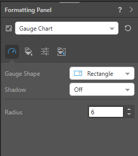 With the Gauge Chart option selected from the drop-down, you can use the options on each of the tabs to change some aspect of the formatting.