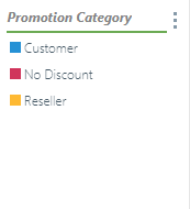 - A legend is automatically added to the canvas when a hierarchy or measure is added to the Color drop zone, whether you're working with charts or grids.