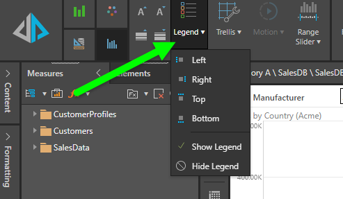 The Legend drop-down on the Component ribbon lets you show or hide the legend, or change its position on the canvas:
