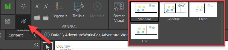 There are four quick style presets supported for Plotted charts. These presets let you apply a pre-designed selection of formatting options to the given chart.
