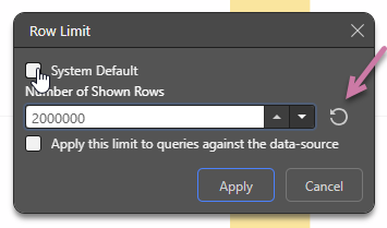 Tip: You can click Reset (purple arrow) to revert back to the default row limit.