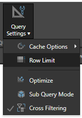 Note: In addition to the row limit, there is also a master query limit set by the administrator in the Admin Console. Pyramid uses the lower of the two limits by default. For more information about the master limits, see Query limits.