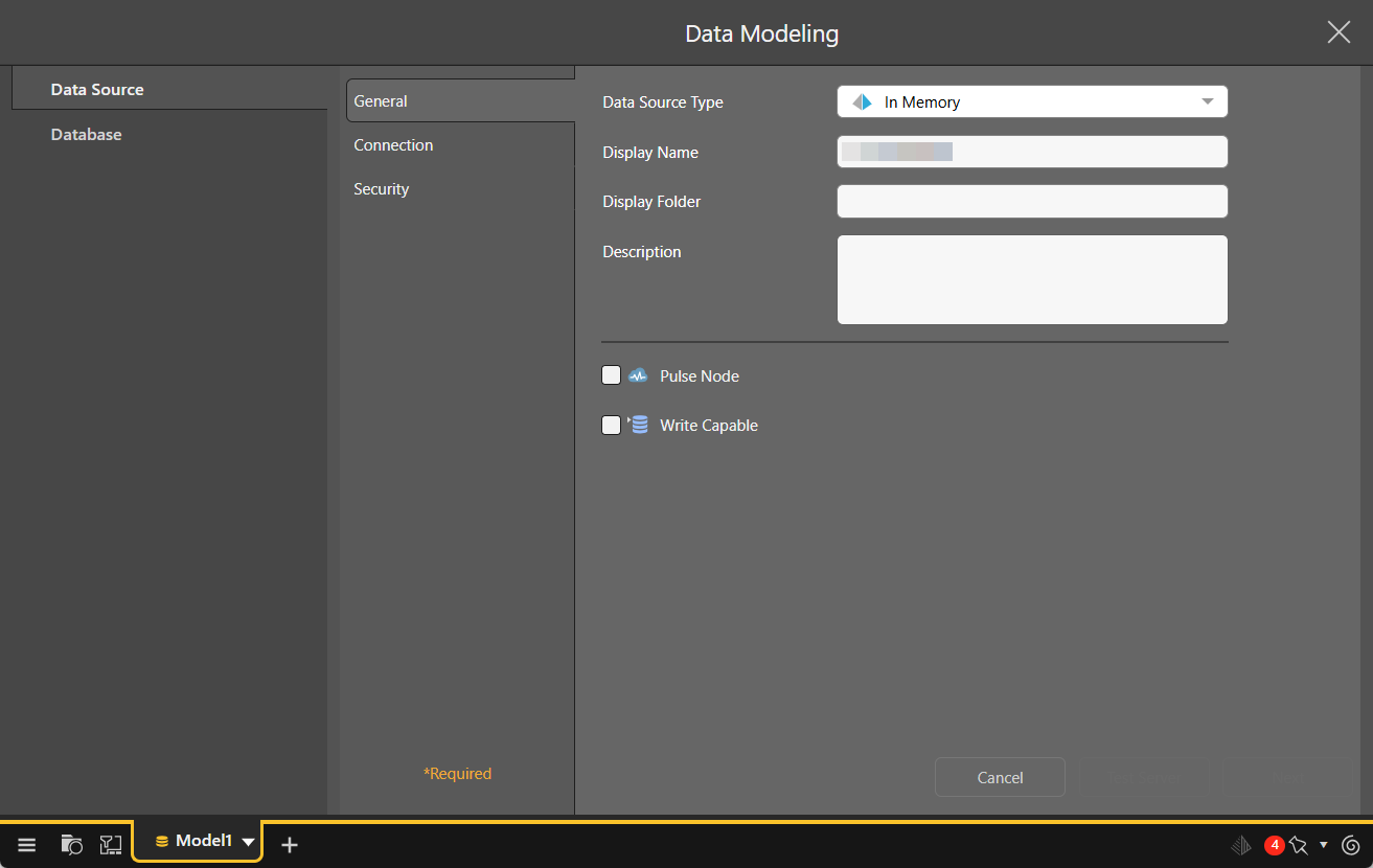 This is a good option if you want to build a new data model based on a single existing database, and you don't require any complex data manipulation or preparation. Note that the data model can be edited later on from Model Pro.