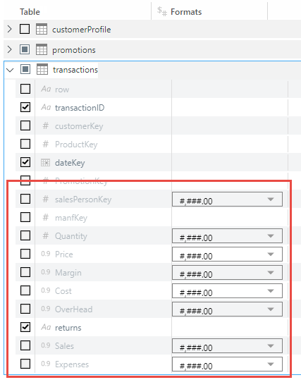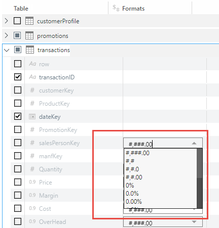 Pyramid also detects measure columns and assigns a measure aggregation to them. This means that they won't be visible as columns in the data model; instead they will be organized into measure folders and will be visible as measures.