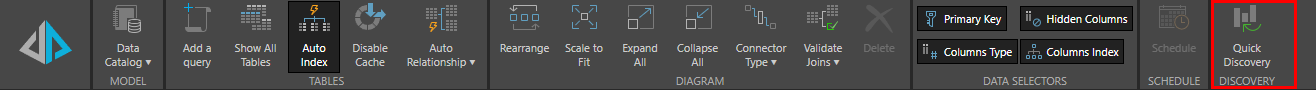 The Quick Discovery function allows you to open the Data Model directly in Discover without re-processing it. It is only enabled if the model has already been processed at least once.