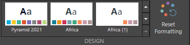 Formatting preferences override not only the current theme, but any subsequently selected theme in the current Tabulation. To discard formatting changes and revert to the default formatting, click Reset Formatting from the Design ribbon.
