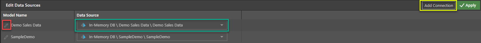 Select SampleDemo from the data connection name dropdown