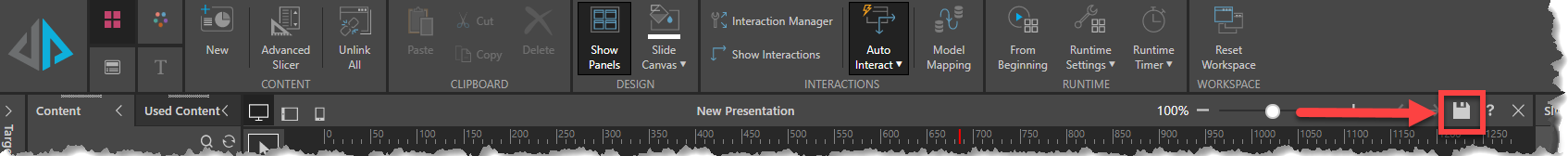 In the Status Bar at the top-right of the Tabulate canvas, click Save (red box):