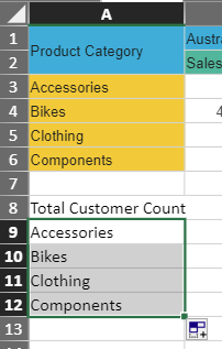 Use the Format Painter to copy the colors to Cells A8 to A12