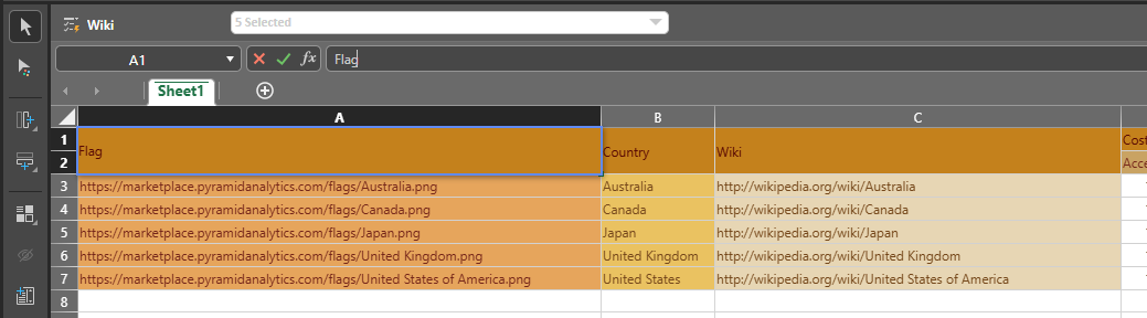 Your source discovery may include one or more Image URL or URL hierarchies (the Flag and Wiki columns in the flowing image):