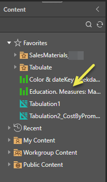 - You should ensure that the discovery you want to copy into your tabulation is available to you; that is, it is present in your local My Content folder or is in a shared location that you have access to. For more information about sharing and directories, see Content Folder Structures.